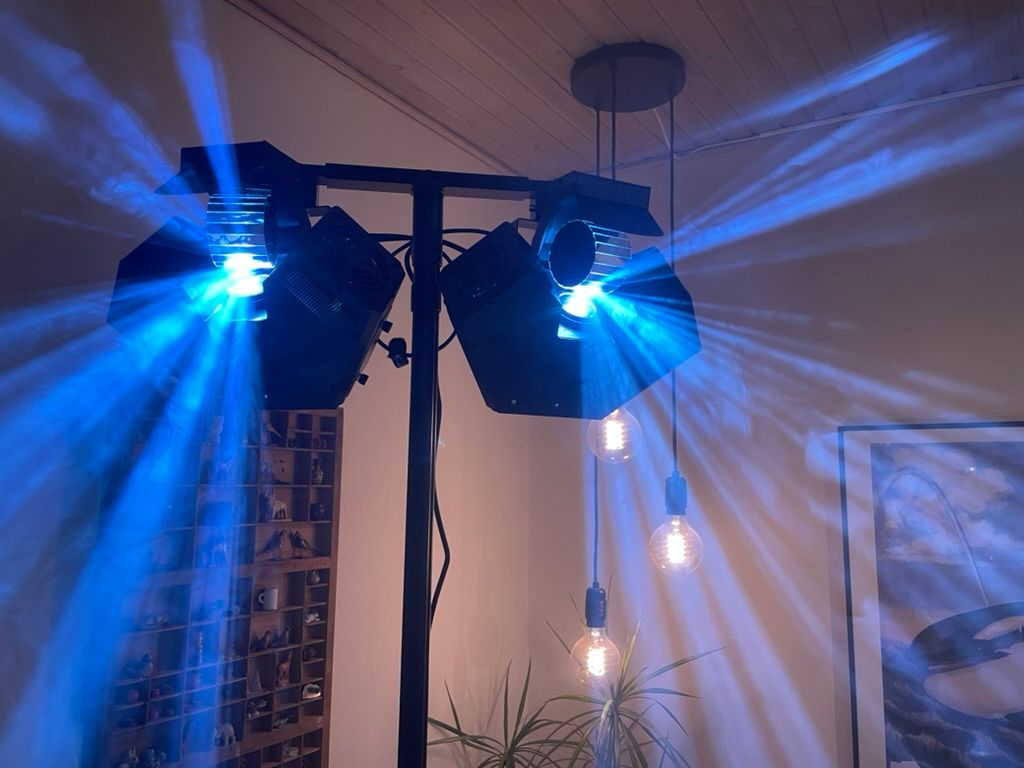 Kraftig lyseffekt med masser af spredning, 7 farver og 7 roterende mønstre. Lampen laver en vifte af lysstråler, som fejer hen over dansegulvet i takt til musikken.